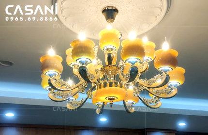 Thi công đèn mâm, đèn chùm cho chị Thúy Royal